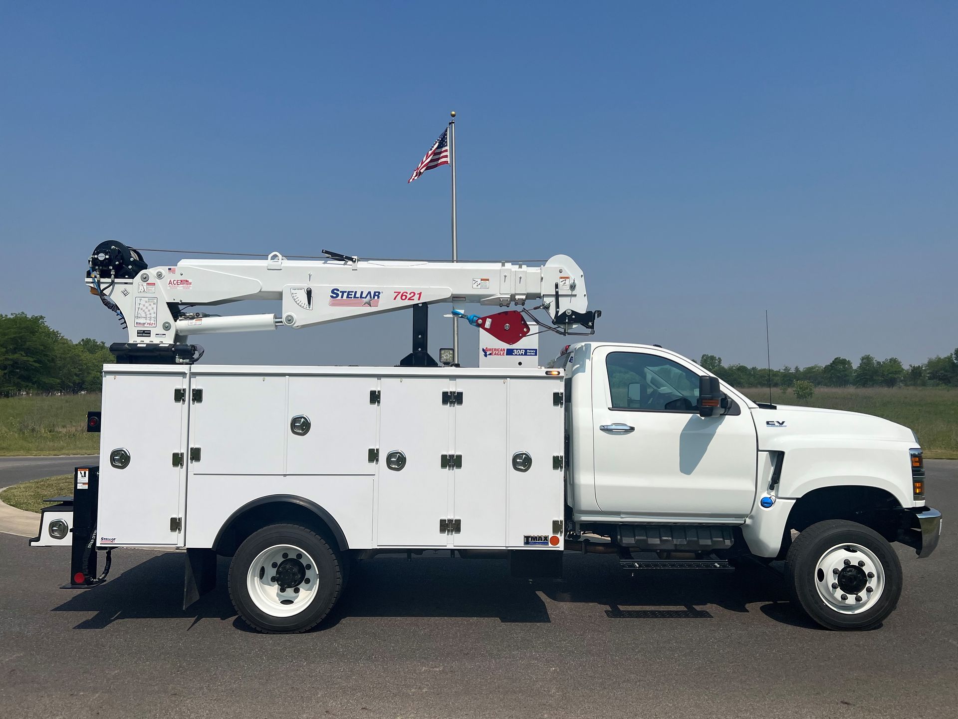 This 2023 International CV515 4 x 4 includes a Stellar TMAX1-11 aluminum body, a Stellar 7621 7,500 lb. capacity crane and a Stellar rotary screw compressor. Please call Rob Leasure at 614-871-3100 for more information.